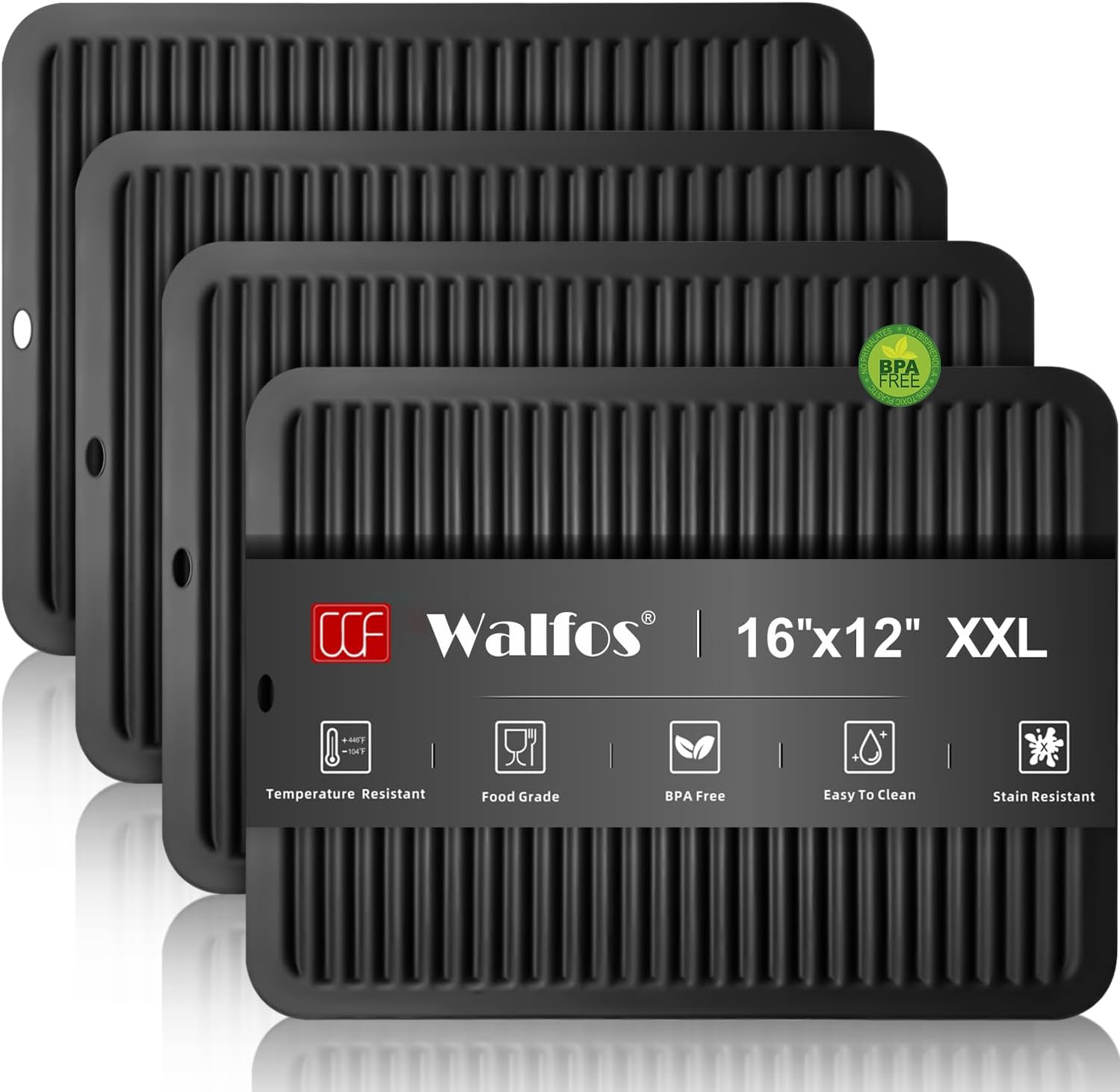 Walfos XXL Silicone Trivet 16x12 Inch, Trivets for Hot Pots and Pans, Heat Resistant Pot Holders Hot Pads for Kitchen Quartz Countertops, Hot Dishes, 4 Pack