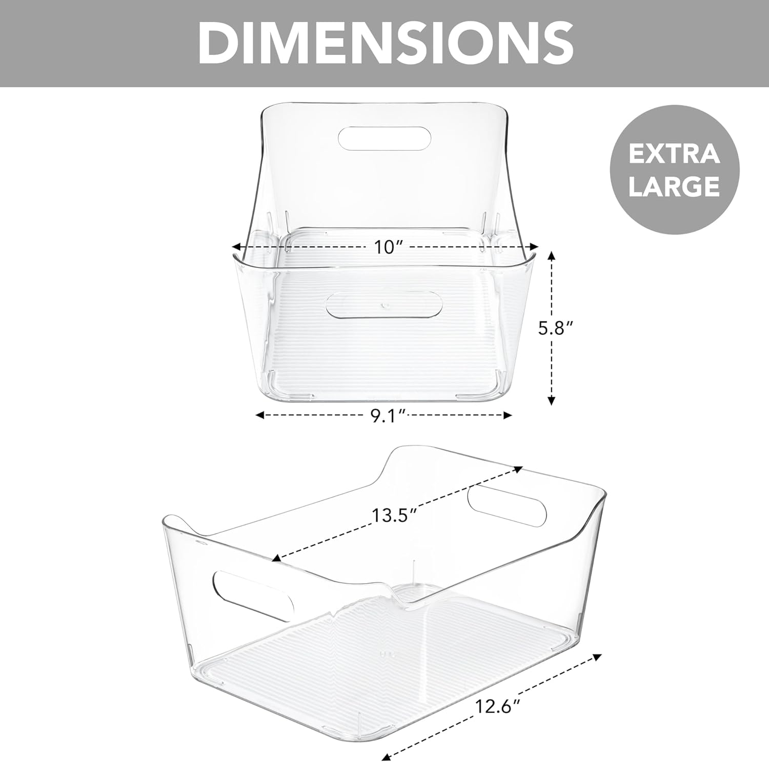 Tiawudi 6 Pack Plastic Storage Bins, Extra Large Pantry Organizer, 13.5" x 10" Clear Storage Containers and Organizer Bins, Multi-Use Bins for Home, Kitchen, Closet and Cabinet