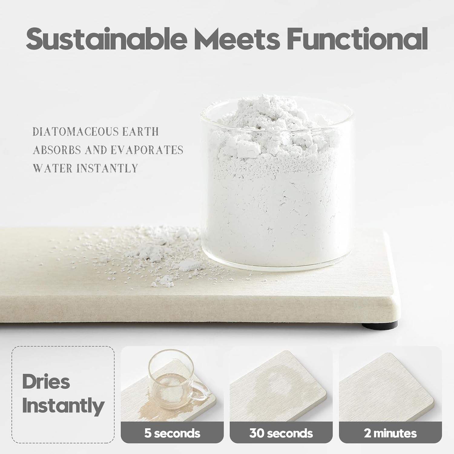 - 【Sustainable Materials】Natural diatomaceous earth dries instantly thanks to its ability to evaporate moisture. Safe, Sustainable and Long-lasting