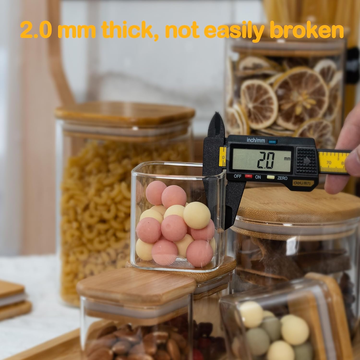 - [Transparent jar]- Transparent square glass containers make your items visible, allowing you to clearly see the contents of the glass storage jar and the remaining stock, and then you can easily replenish the food that is about to run out.