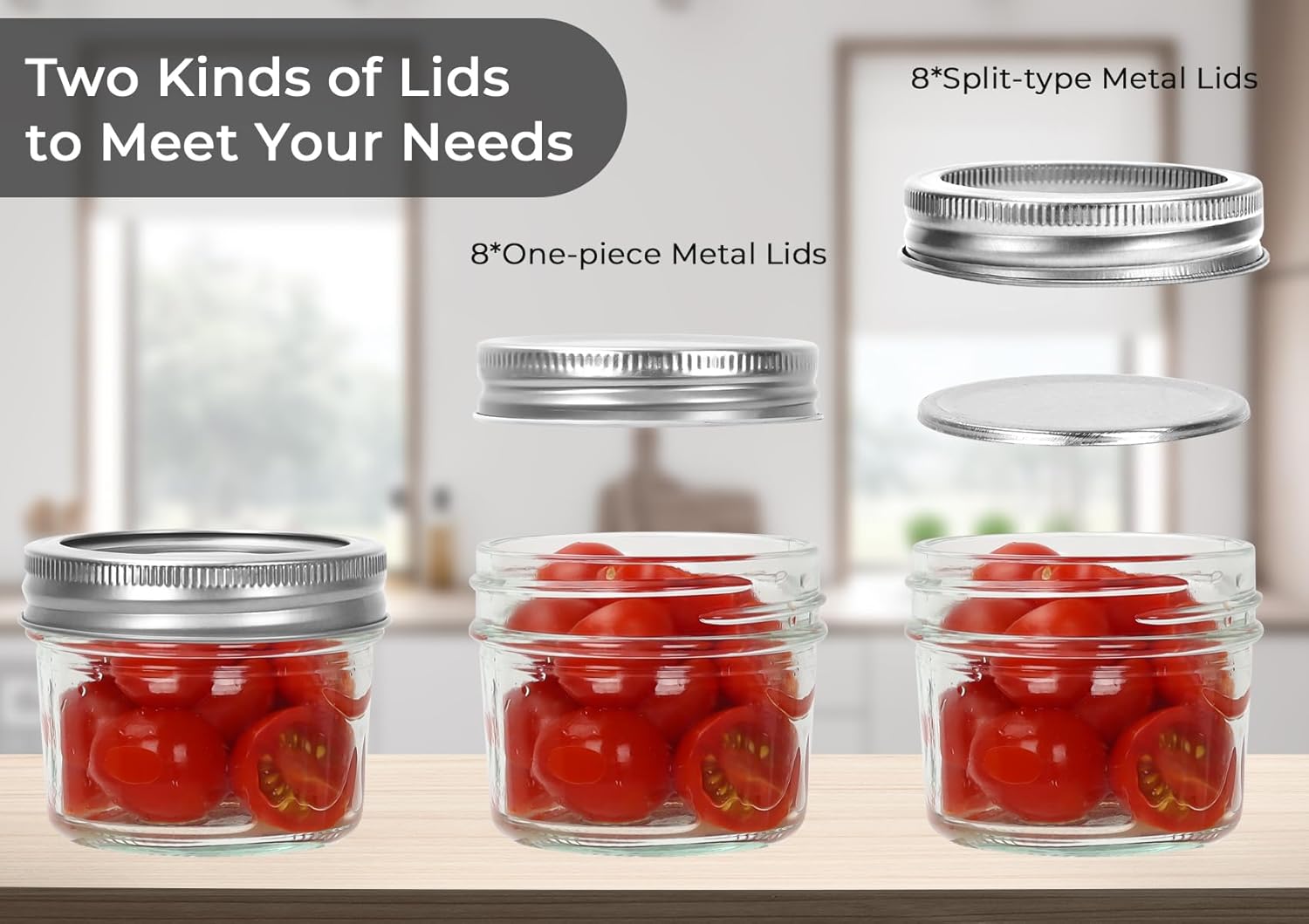 Eathtek Small Mason Jars 8 Pack, 4oz/120ml Mini Canning Jars with Regular Lids for Jelly Herbs Spice Honey Storage, Small Glass Jars Candle jars, Extra Lids Tags Label Included