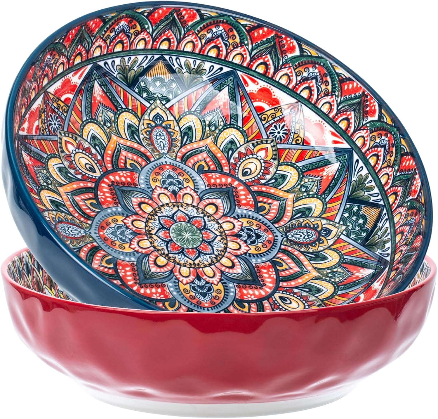 75 Oz Serving Bowls,Bohemian Style Large Porcelain Dishes for Entertaining Parties,Big Bowls for Eating Soup, Salad, Pasta, Fruit, Chips, 10.3 Inch Diameter (blue.red)