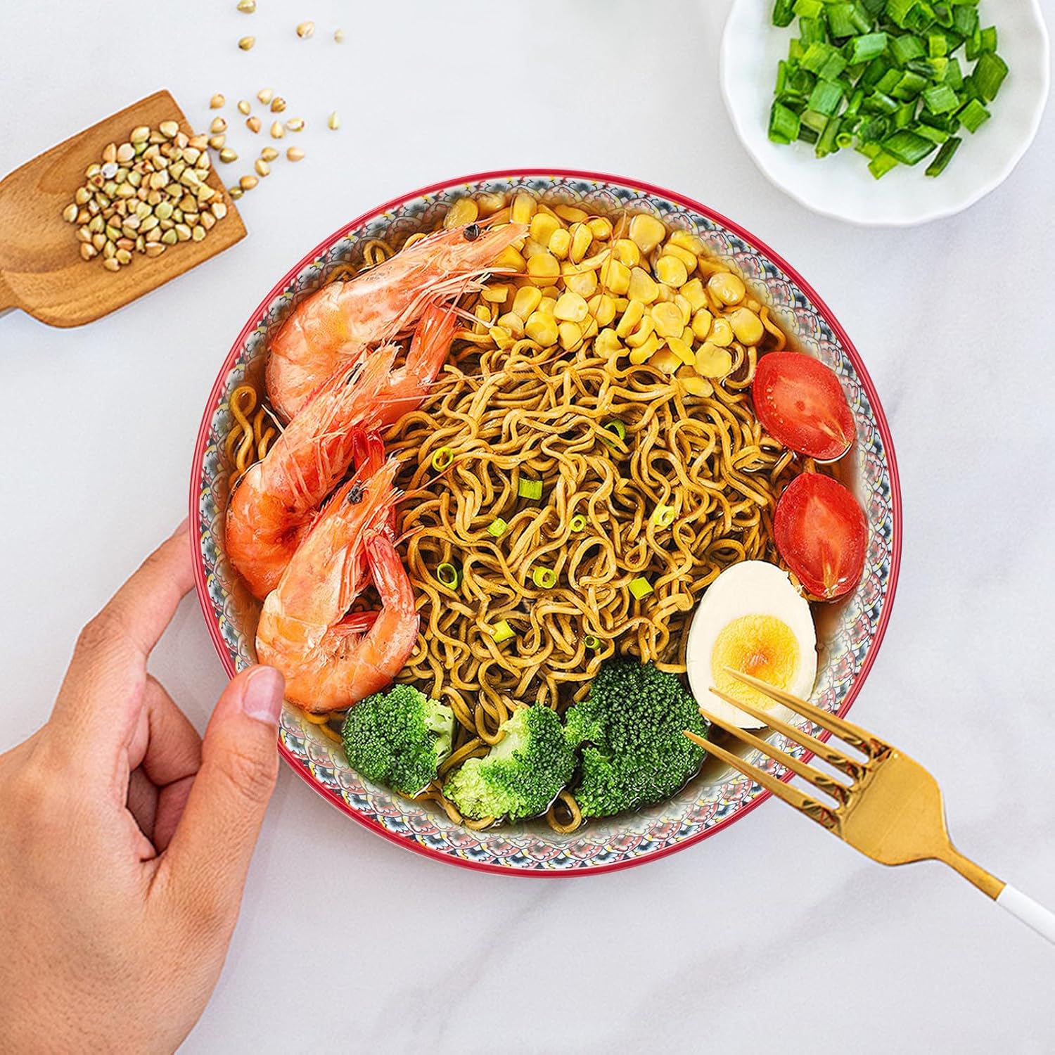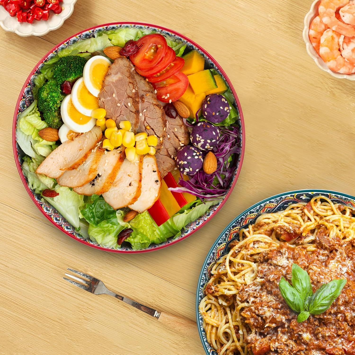 Large Serving Bowls, 75 Oz Fruit Salad Bowls, Bohemian Style Large Porcelain Dishes for Entertaining Parties,Big Bowls for Eating Soup, Salad, Pasta, Fruit, Chips, 10.3 Inch Diameter (red)