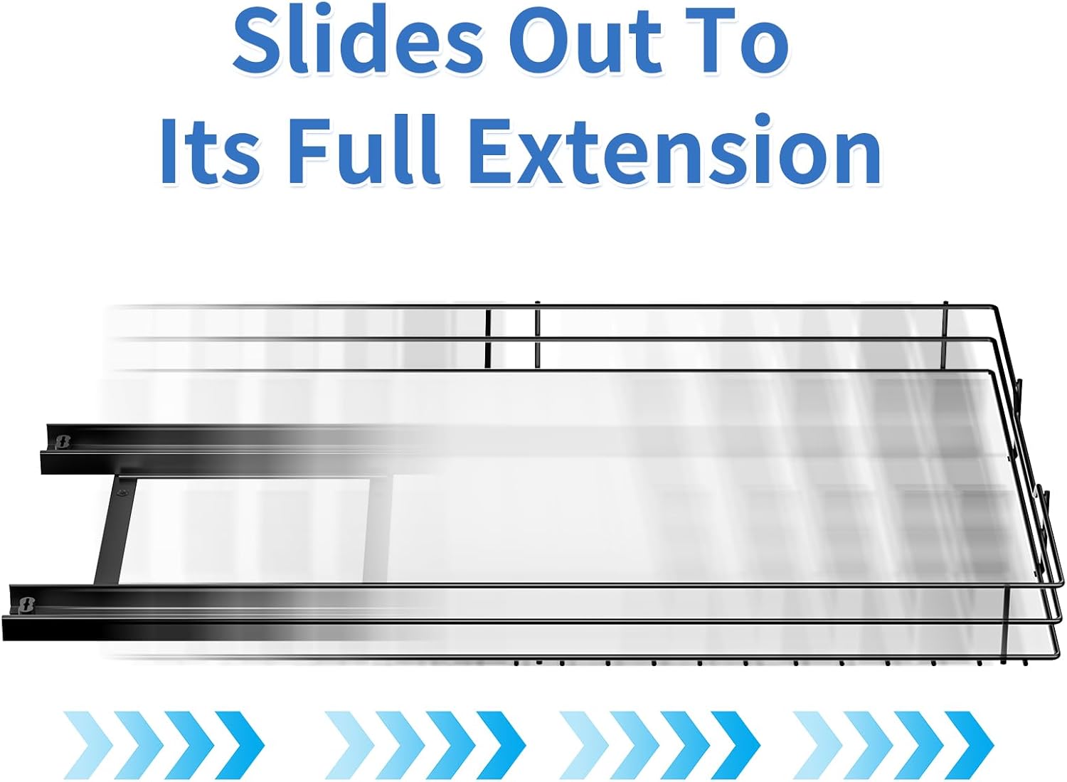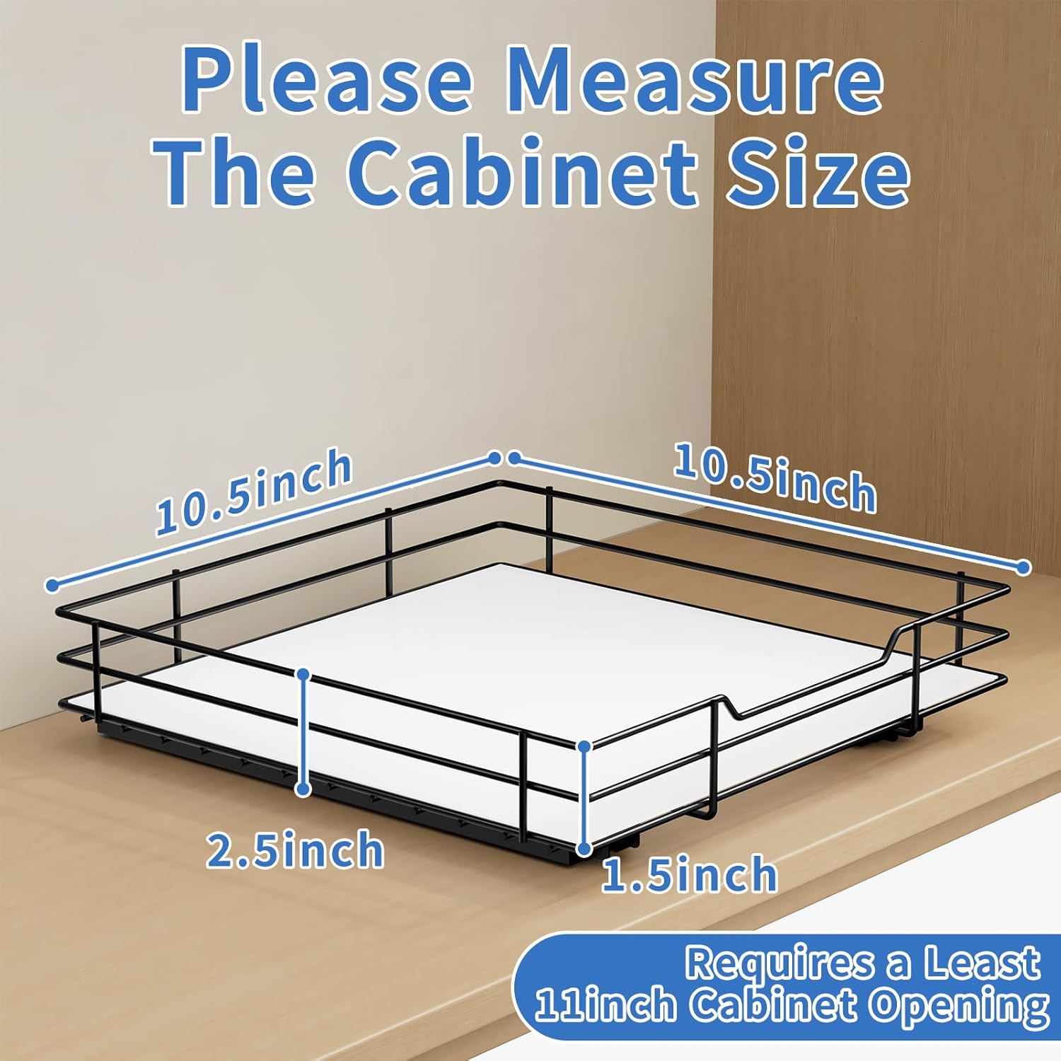 Pull Out Spice Rack, Slide Out Spice Rack for Cabinet, Spice Organizer for Kitchen and Pantry, Fits Spices, Sauces, Canned Food (10.5''Wx10.5''Dx2.5''H)
