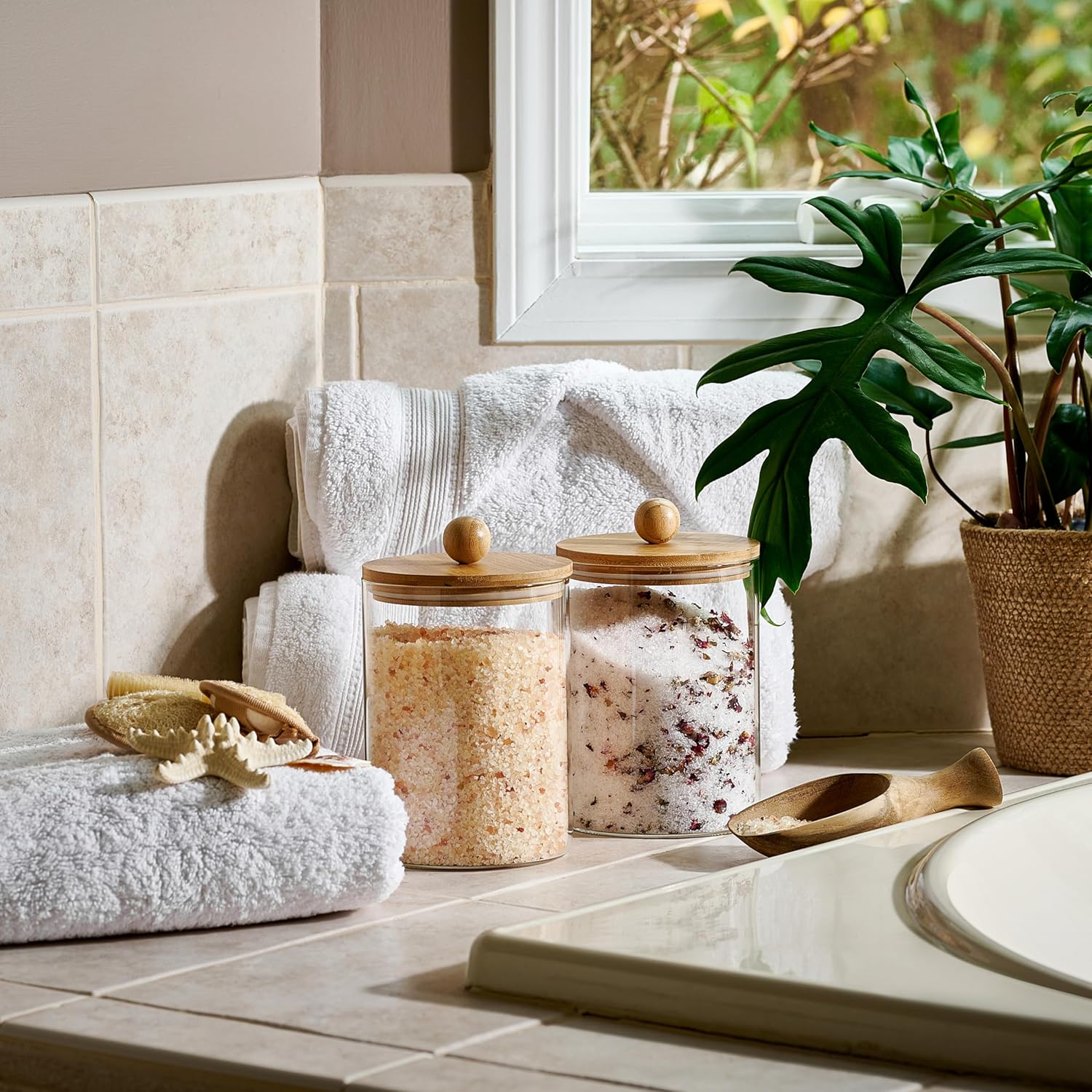 - AIRTIGHT SEAL for FRESHNESS: Seal in the freshness of your favorite ingredients with airtight bamboo lids, keeping your favorite tea, coffee beans, exotic spices, essential baking ingredients, and more at their peak flavor.