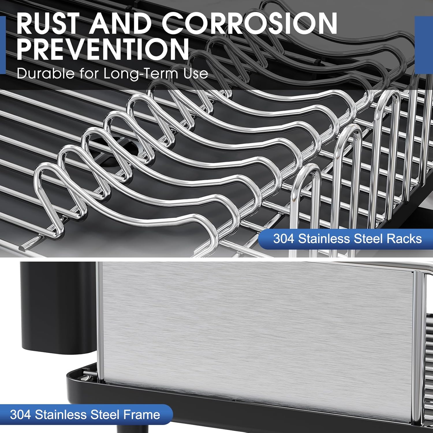 - 304 Rust-Proof Stainless Steel: This dish rack is made of a high quality 304 stainless steel. The high grade 304 stainless steel has excellent resistance on rust, and therefore ideal for kitchen and dishware applications.