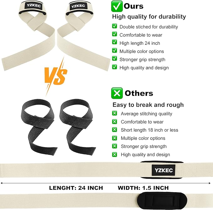 24" Cotton Weight Lifting Wrist Straps with Neoprene Cushioned Padded for Wrist Support and Protection,Weightlifting,Strength Training,Bodybuilding,Powerlifting,Dumbbell Workout,Men and Women (Pair)