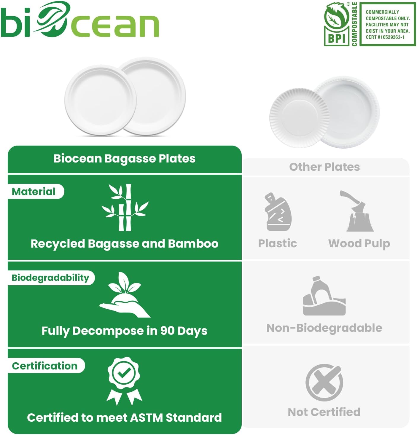 - Eco-Heroes in Action - Certified by BPI, our paper plates are 100% biodegradable, gracefully returning to nature in just 90 days. No landfill destiny; they leave zero waste and make a profound impact, showcasing our unwavering dedication to a cleaner, greener planet