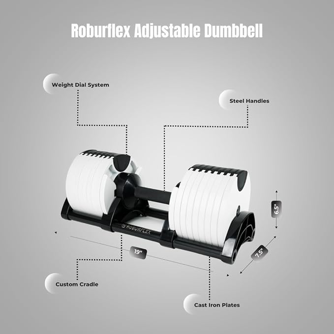 Adjustable Dumbbell (Single) by ROBURFLEX for Workout Strength Training Fitness Home Gym