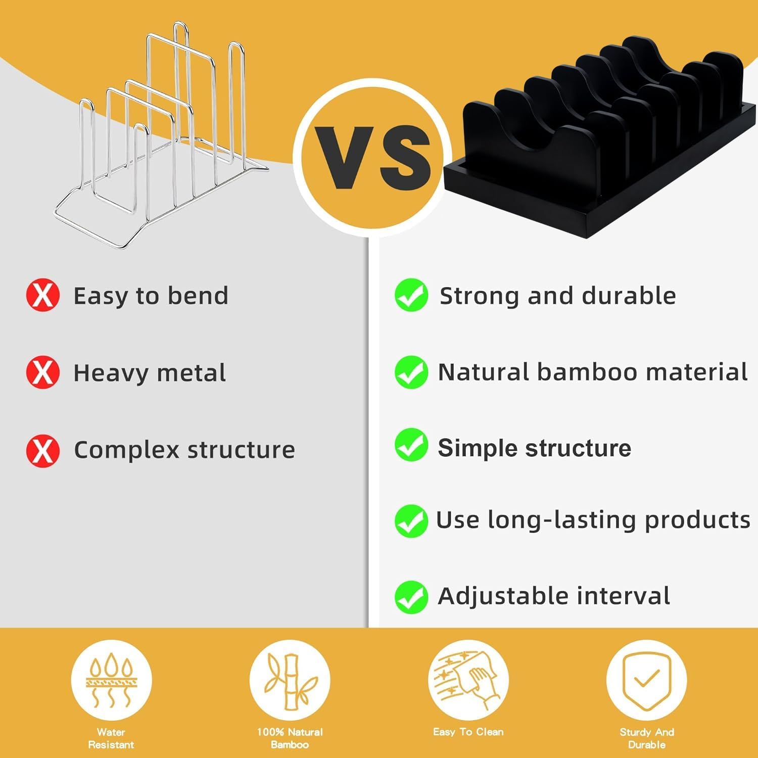- Durable and Safe Material: It is made of Acacia wood products. The stand is better upgraded, more durable and stable to hold heavier cookware. Natural Acacia wood products can better match the cookware and style of the kitchen,The smooth surface can protect your kitchen items from being scratched