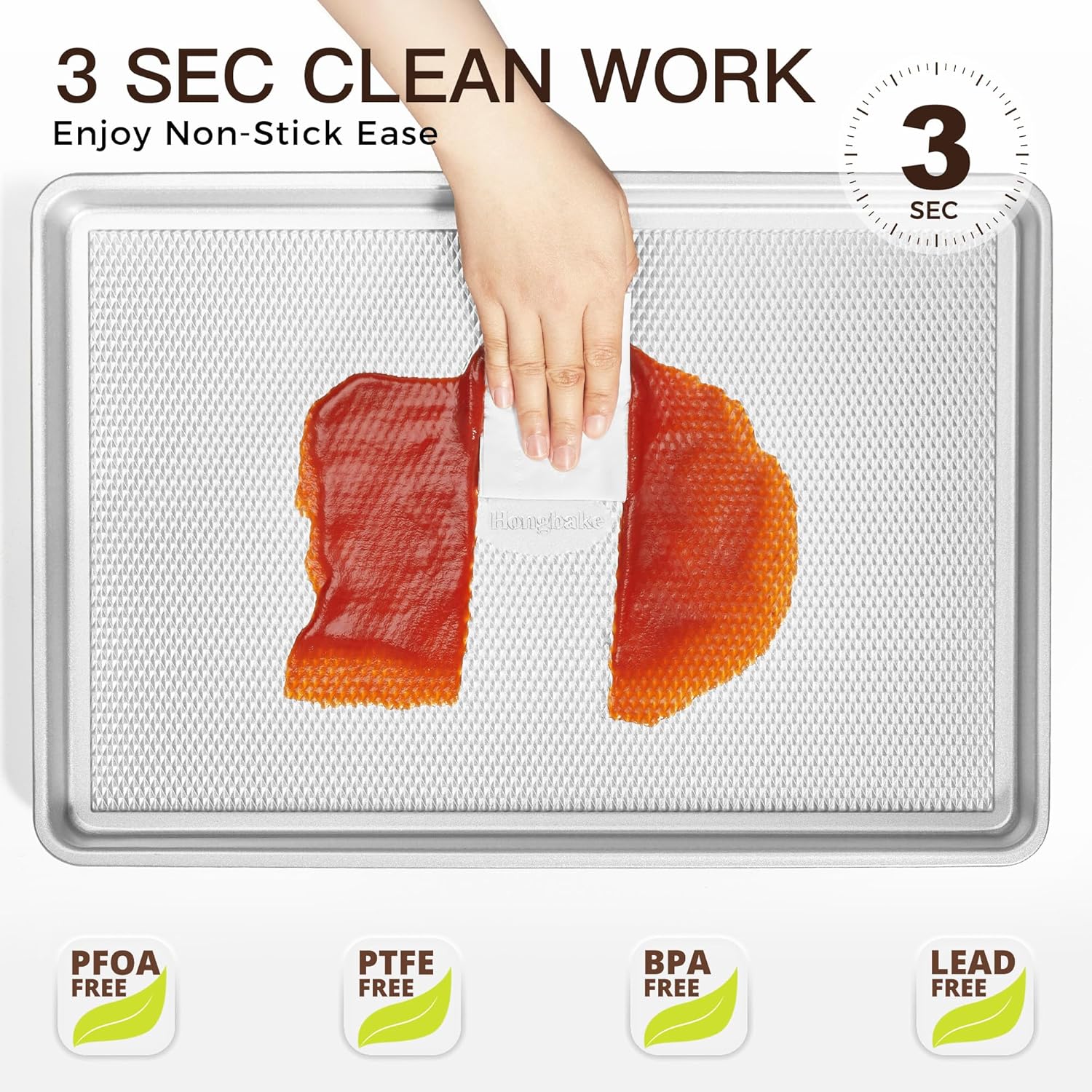 HONGBAKE Baking Sheet Pan Set, Cookie Sheets for Oven, Nonstick Half/Quarter/Jelly Roll Pans with Diamond Texture Pattern, Heavy Duty Cookie Tray, Silver