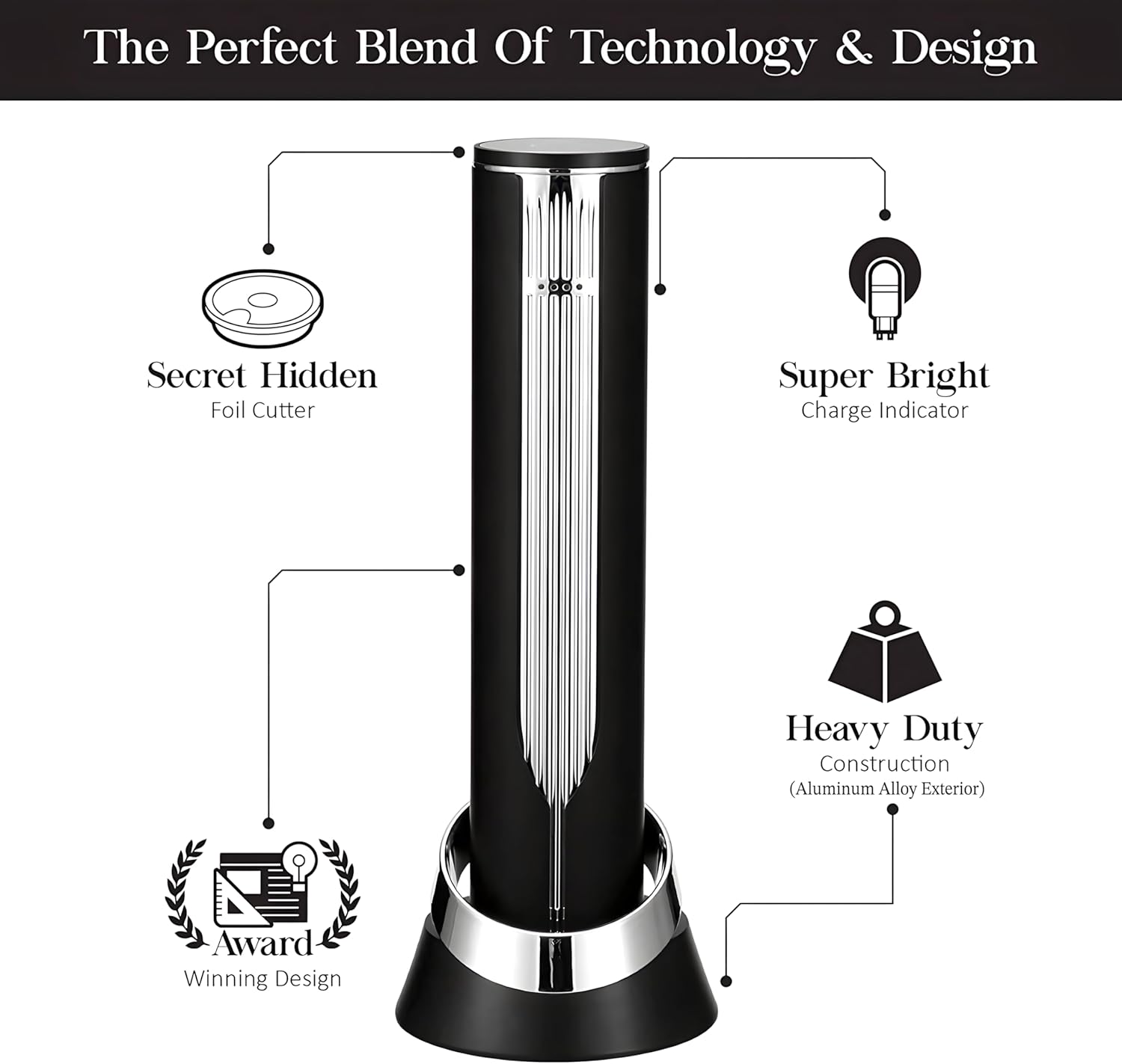 VINOWAKE Openero Electric Wine Opener By LINKSTYLE — Rechargeable Battery with Charging Base, Precision Steel Foil Cutter, Luxurious Matte Finish