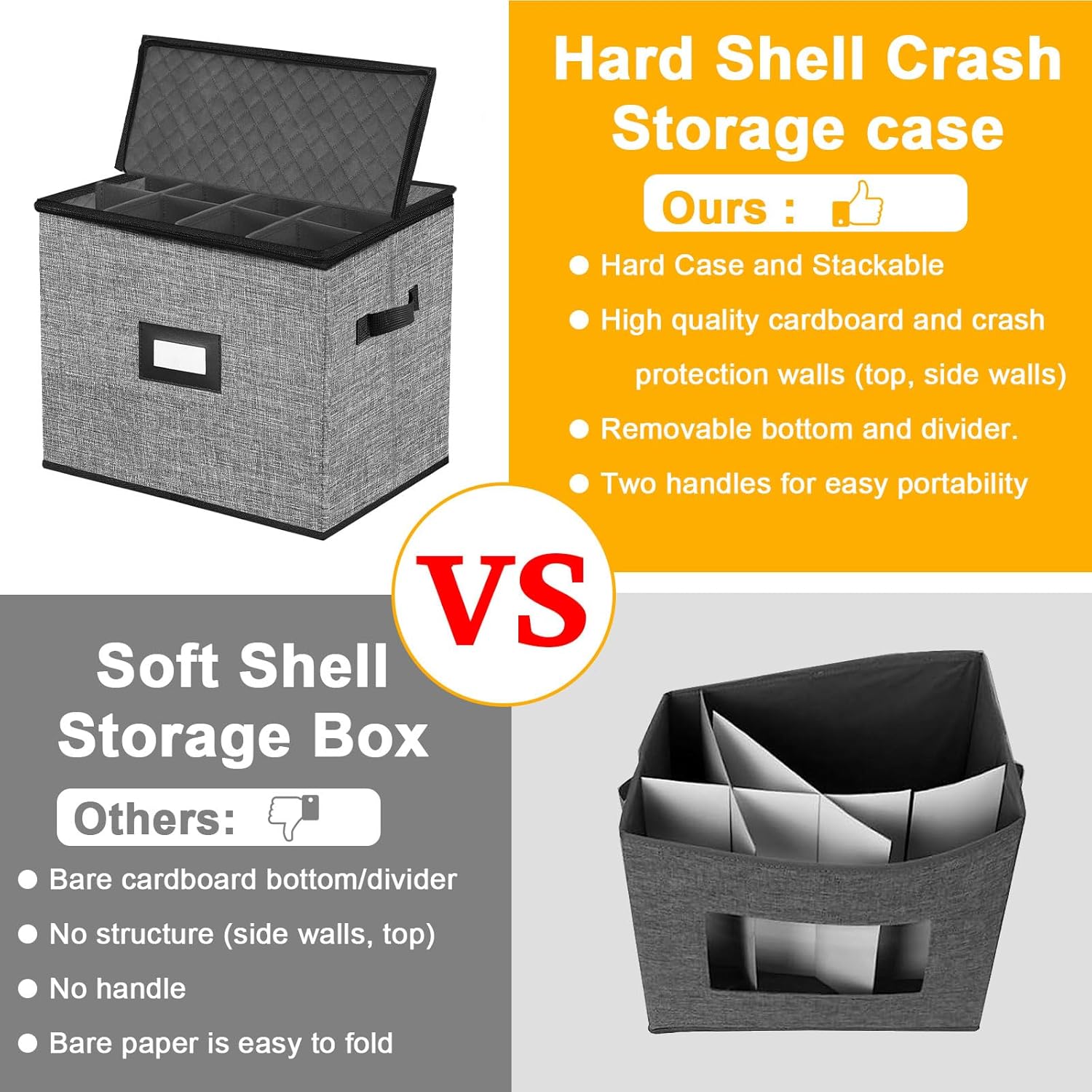 Champagne Flute Storage Box,Quilted Stemware Storage Box Hard Shell,Stackable Champagne Glass Container,Wine Glass, Crystal Glassware, Drinkware Case for Moving Transport(Grey)