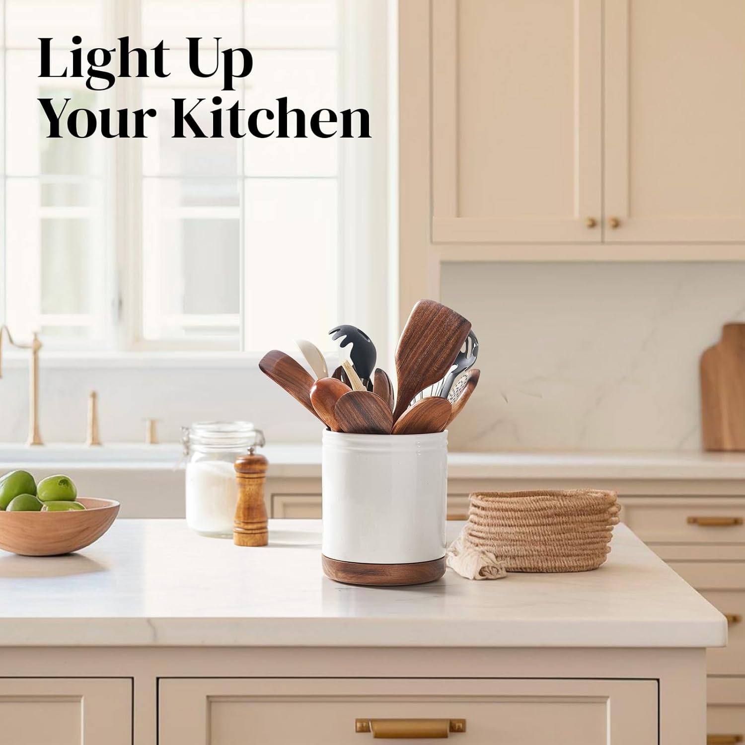 - Stable & Fall-Prevention Design: Enjoy excellent stability with our utensil crock, featuring a weighted bottom made from durable, removable wood. This design ensures your tools stay upright, preventing tipping during busy kitchen moments. The sturdy construction of this ceramic utensil holder keeps your kitchen organized, ensuring easy access to your tools.