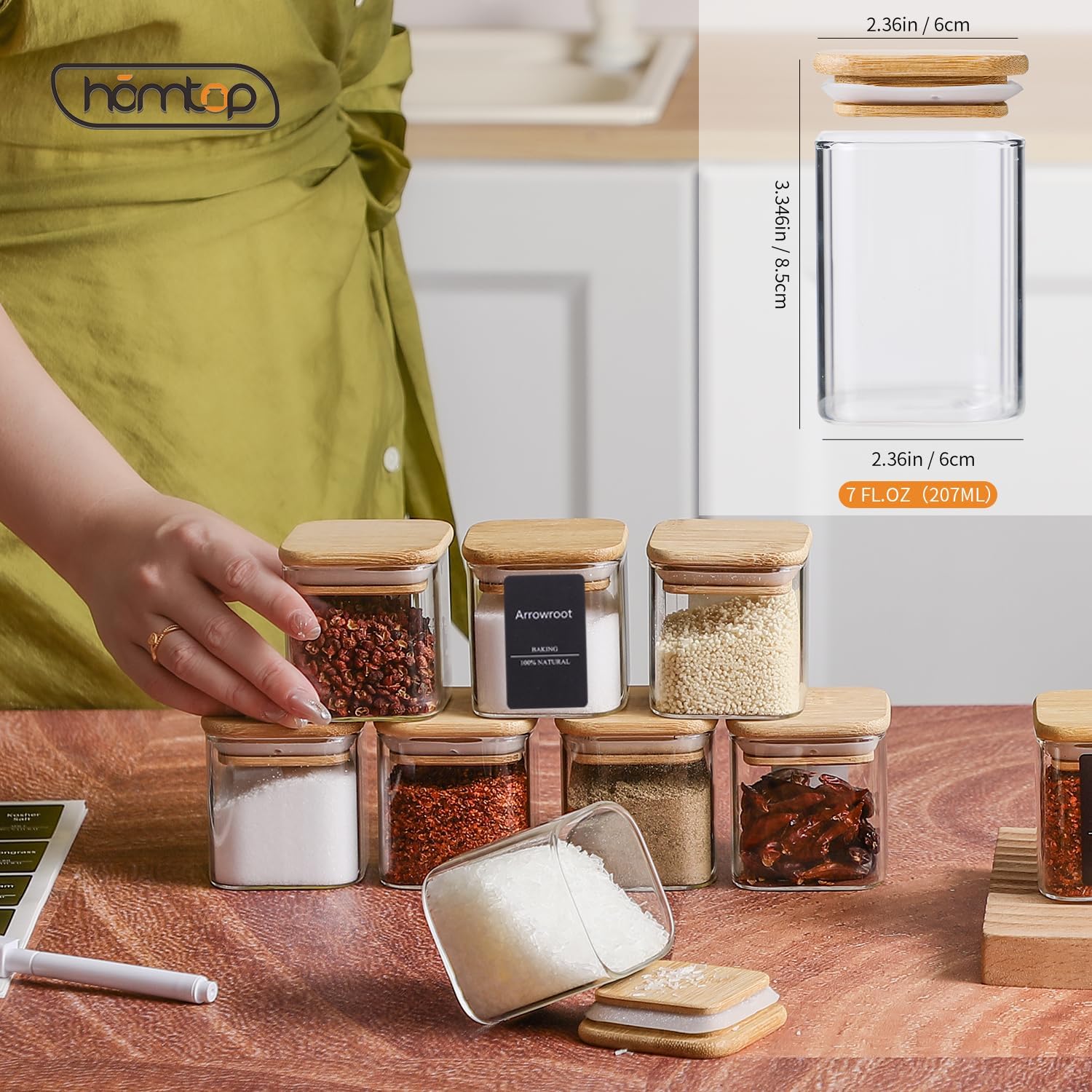 - Notice - These spice jars can only use in storing dry food. The jars(Without lid) can use in microwave, oven, dishwasher.