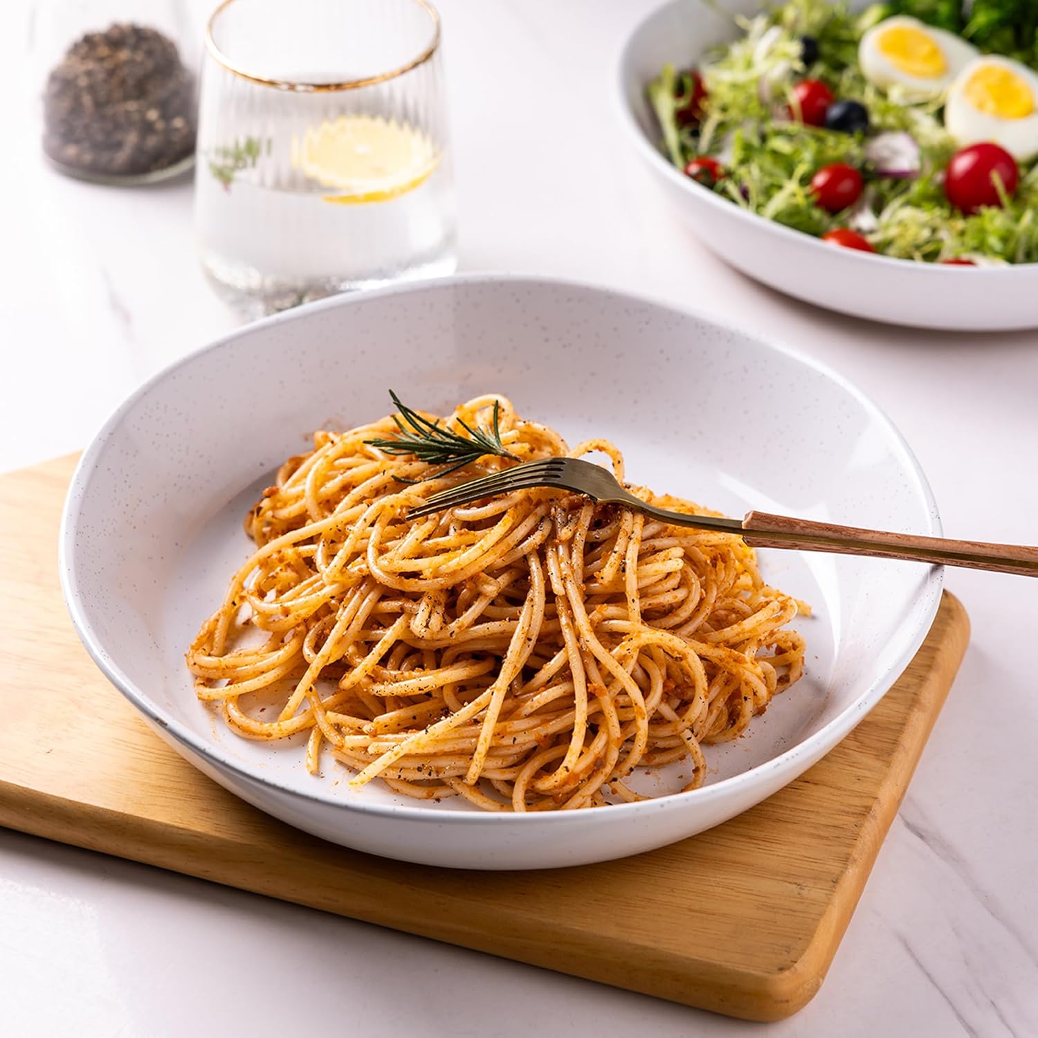 - UNIQUE DESIGN WITH WAVE RIM:These Pasta Bowls are designed by professional artist,The beautiful speckled glaze feels comfortably, It looks fantastic on the table and brightens up your kitchen. It perfect for daily using and special occasion.