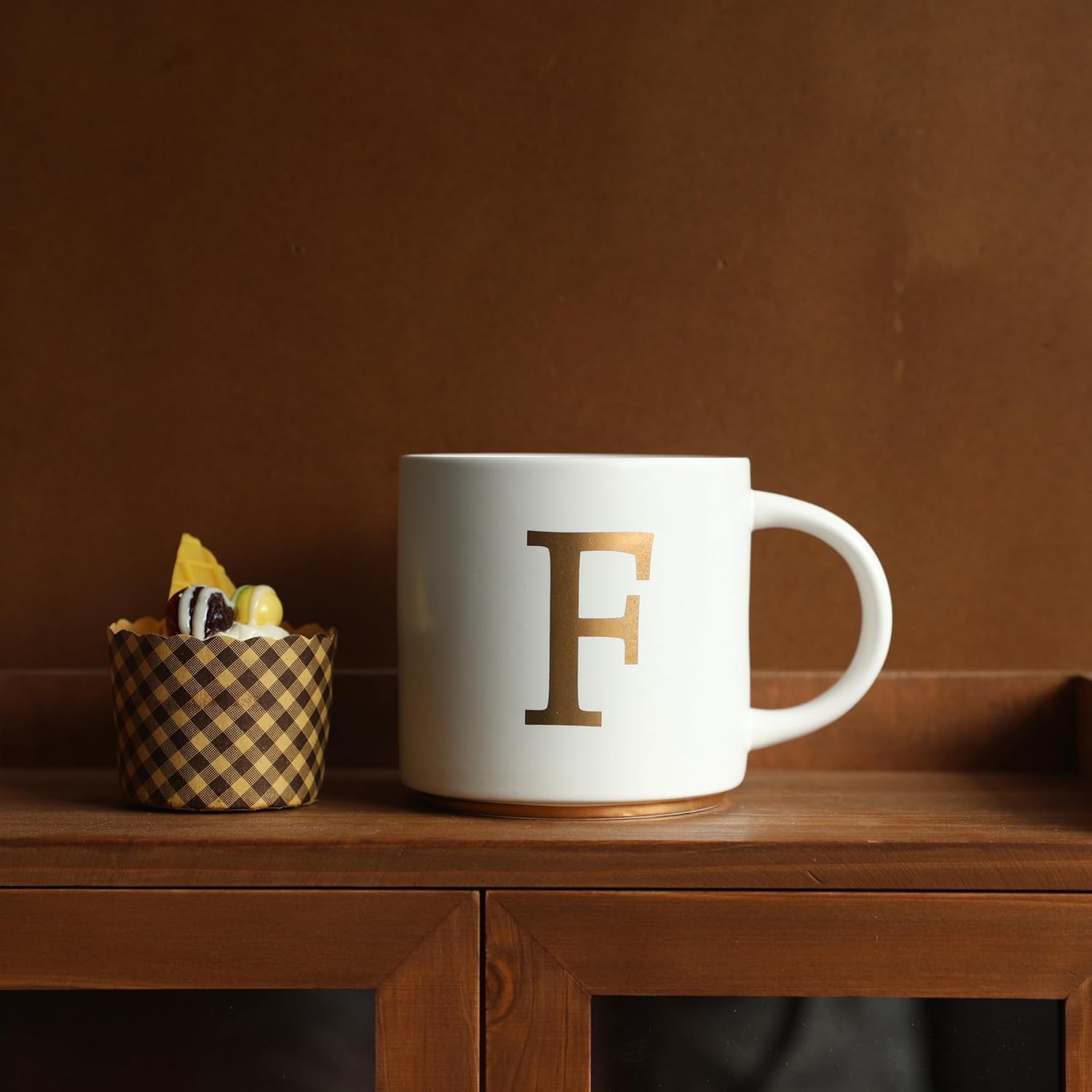 - 【Elegant Gold-Plated Alphabet Design】Our ceramic mugs showcase a stunning gold-plated monogram, adding a touch of sophistication to your morning coffee, afternoon tea, or evening hot cocoa.