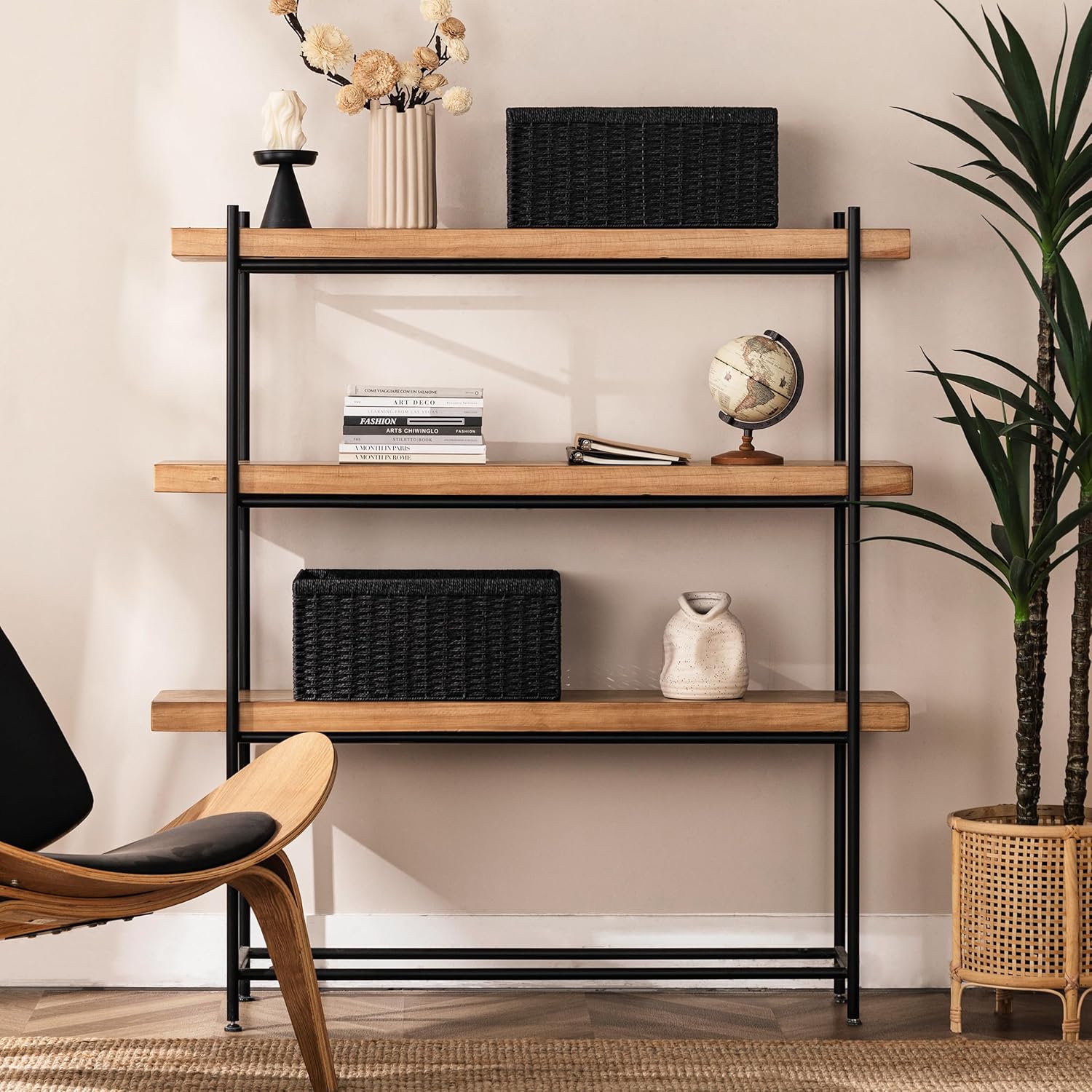 UBBCARE 3 Pack Wicker Basket, 13.4L×8.3H×7.1W inch Woven Paper Rope Storage Baskets for shelves, Foldable Rectangular Storage Baskets with Handle, Storage Basket for Organizing, Black
