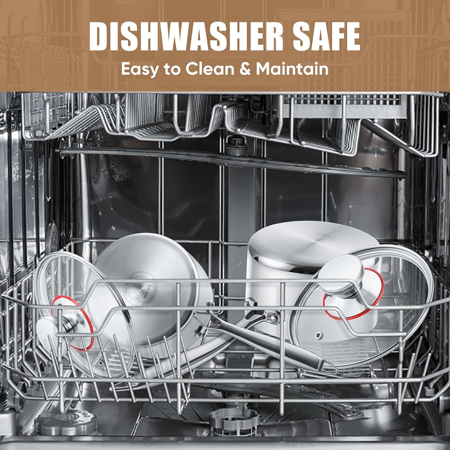 - 18/10 STAINLESS STEEL - Constructed of premium quality 18/10 stainless steel without chemical coating, Won't corrode, rust, or react with food, No warping, cracking or chipping, No need to worry about toxic materials cooking into your food, Healthy and durable for all your daily kitchen cooking use, Easy to clean and dishwasher safe