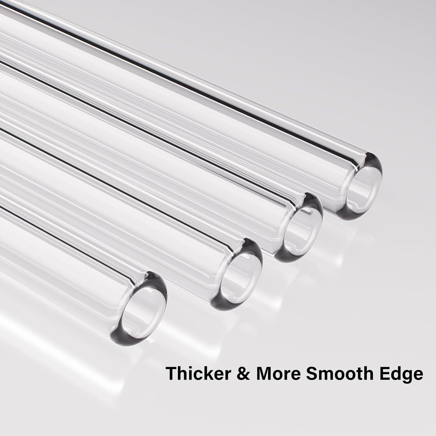 - Every straw is unique because our clear glass straws are individually handcrafted from top-notch high borosilicate glass. They're lead-free, totally non-toxic, and BPA-free. These straws for tumblers can handle any temperature, from a chilly -68°F to a scorching 753°F. Therefore, it work great for hot or ice drinking.