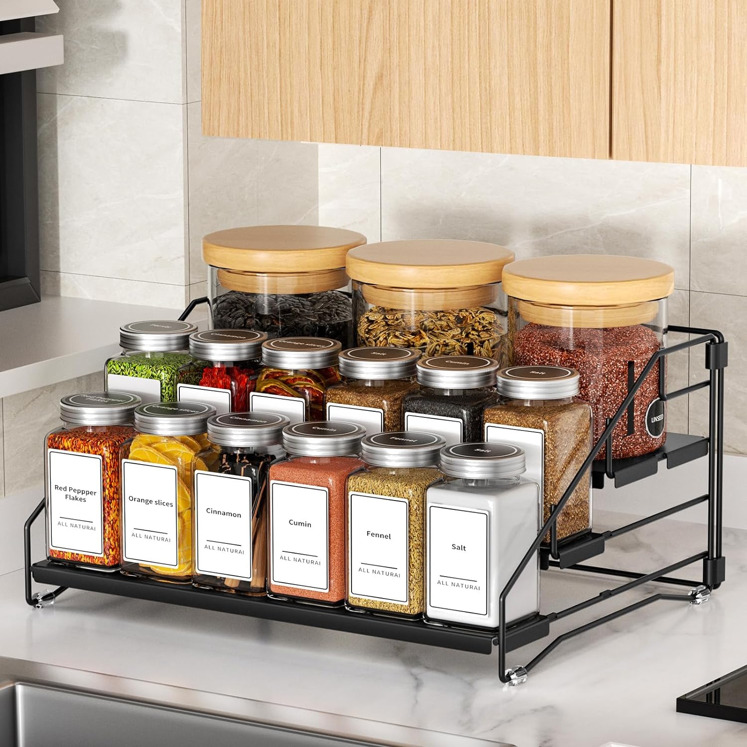 - Easy to Assemble & Cleaning: Spice rack for countertop with folding design, easy to assemble, no screws required, with simple instructions. Get a cabinet countertop spice rack organizer in a breeze. Simply wipe with a rag and the spice rack is ready, brand new, caring for your spice cabinet organizer has never been easier.