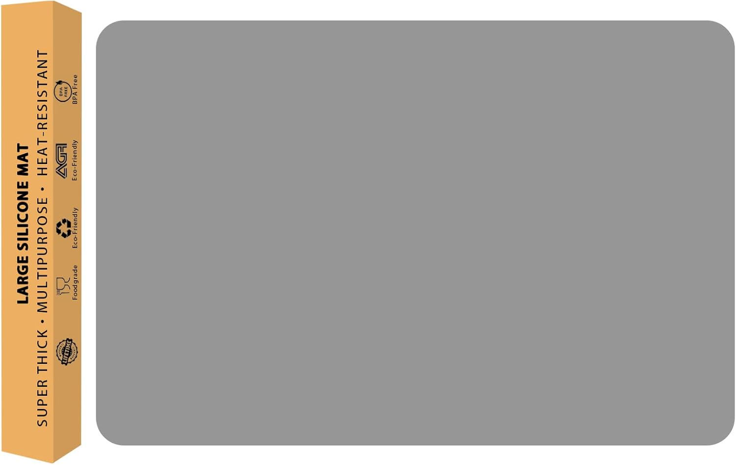 - Large & Thickened: The size of the silicone mat is 23.6" x 15.7" x0.08"(60cmx40cm). The thickened design makes it have better protection and not easy to tear up. We roll up the mats for packing to prevent permanent creases when packaged and shipped, and you will no longer suffer from mat creases.