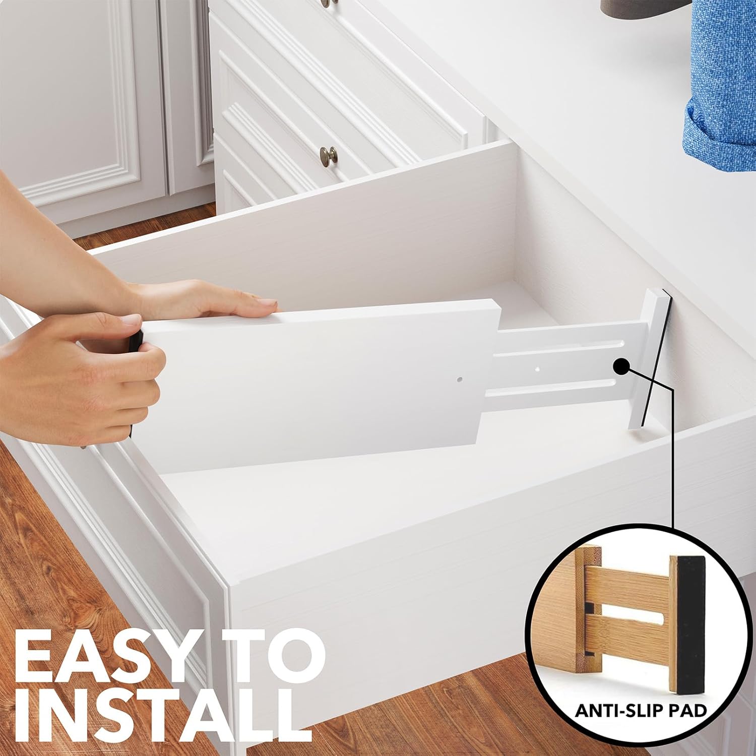 - 6 White Drawer Dividers: Customize your dresser drawer with our bamboo dresser organizers; You can organize your clothes dresser with this 4.65 inches high drawer dividers