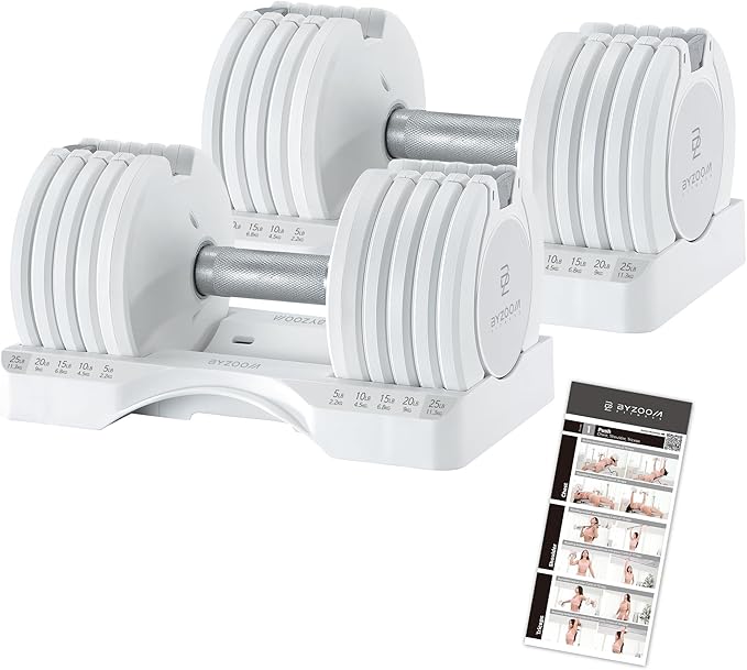 - CONVENIENT AND SPACE SAVING: Fixed length on adjustable dumbbells is never a problem for BYZOOM FITNESS. The exclusive patented weight selection mechanism allows you to have an accurate weight and adjustable length.