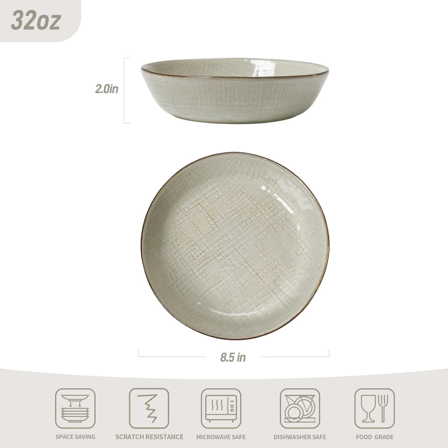 famiware Moonlight 8.5 Inch Pasta Bowls Set of 4, 32oz Serving Bowls for Kitchen, Soup Bowl with Linen Finish, Large Stoneware Bowls for Festivals, Housewarming, Dinnerware, Summer Sand