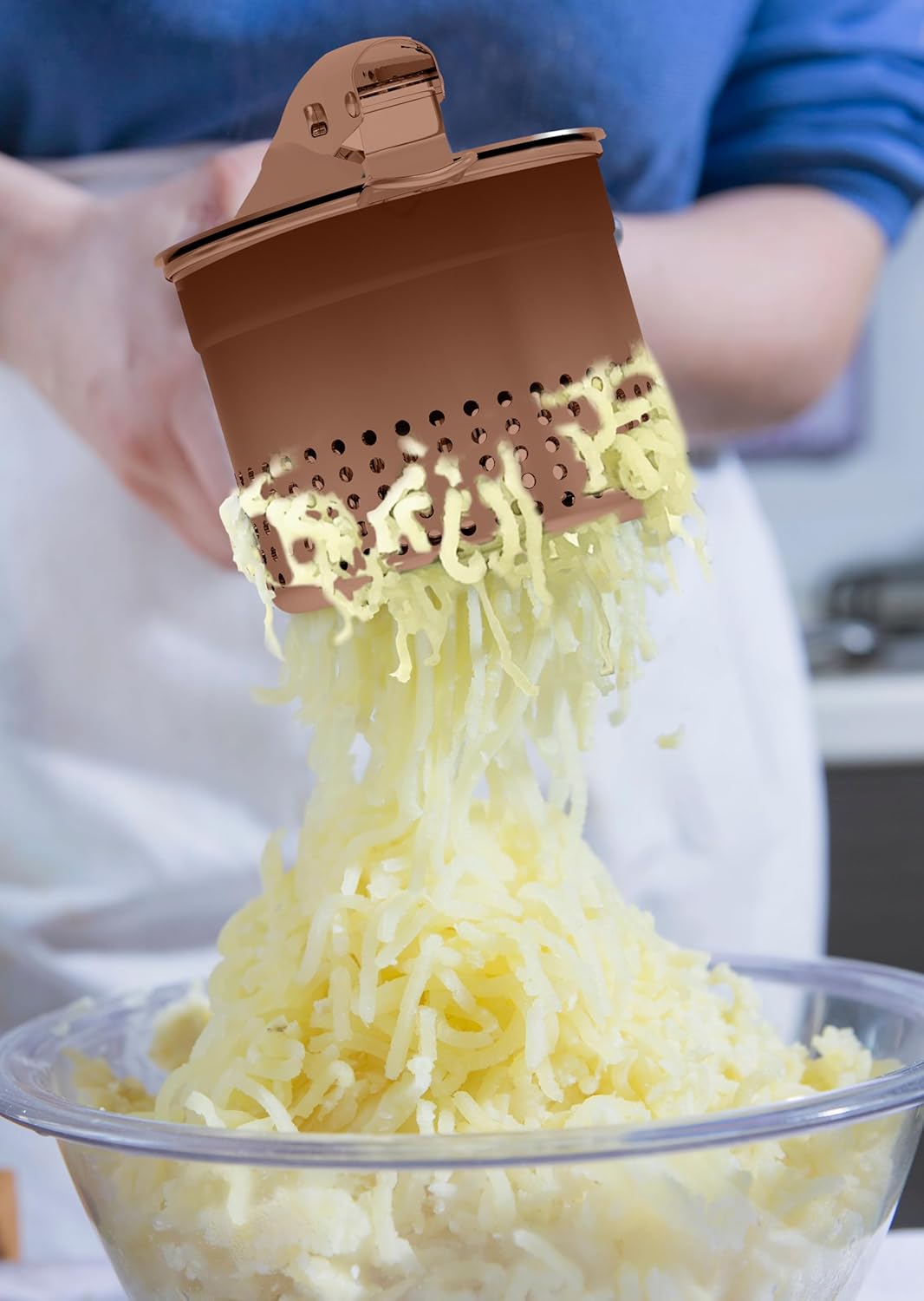 - Easier Mashed Potatoes - The potato press has a maximum capacity of 15 oz, 3mm press holes for finer output and no jamming, the extra holes allow you to make delicious mashed potatoes faster!