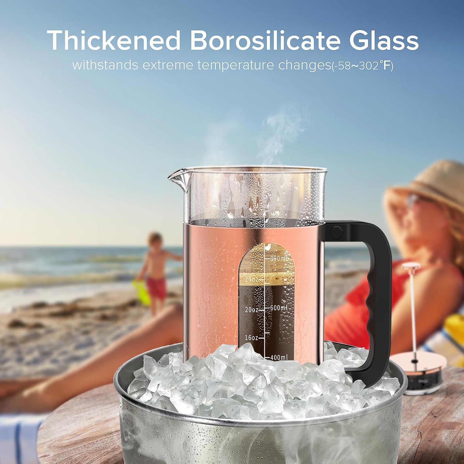 - 【MULTIPLE USES】Besides using the french press as a coffee maker, it is also handy appliance to make tea, mct oil coffee, hot chocolate, cold brew, frothed milk, almond milk, cashew milk, fruit infusions, and plant and herbal drinks. Suitable for house warmings, weddings, birthdays, holidays and all coffee/tea lovers & healthy foodies