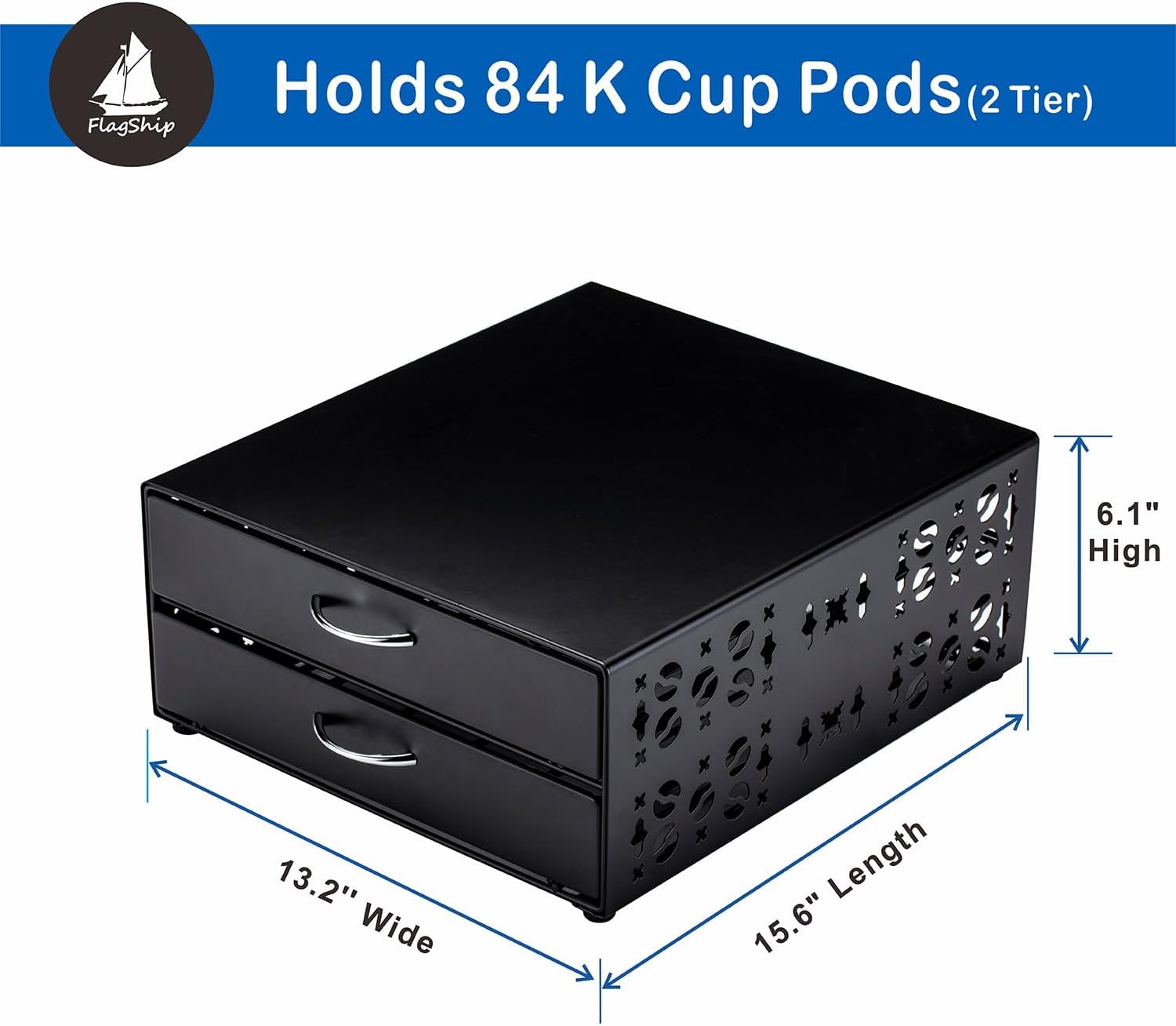 - 【Designed for Coffee Station】Modern design of FlagShip pod Holder keeps your capsules neat and tidy and your counter clean.Find your favorite coffee flavor quickly and easily with the tiered system. You can place mugs and accessories on top of the drawers to have everything in one spot you may need.