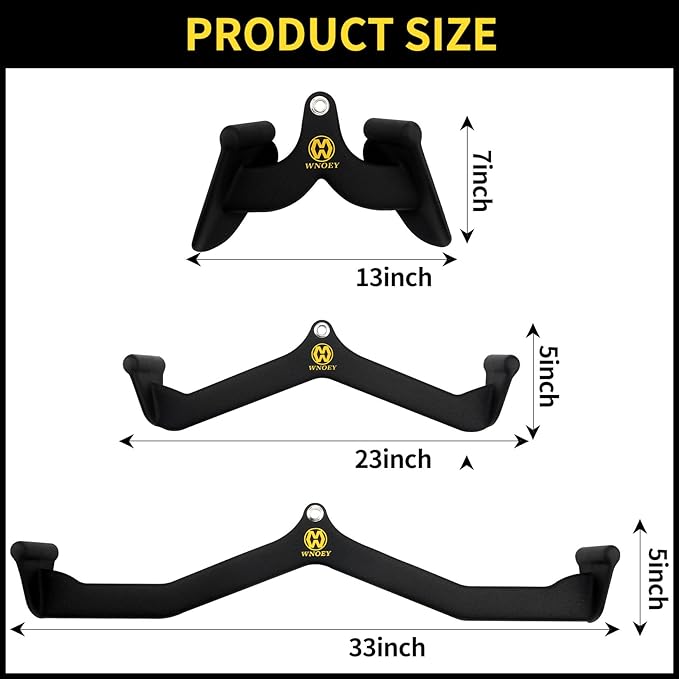 - 【HIGH QUALITY】 :You will receive 3PCS LAT pull-down bar,size 33"X6.5" and 23"X9"and 13"X5",LAT Pulldown Attachments is made of high-quality solid steel, and the exterior is coated with thickened rubber coating, Ergonomic handle design than other traditional round lat bar handles, focus on the targeted back muscle group.