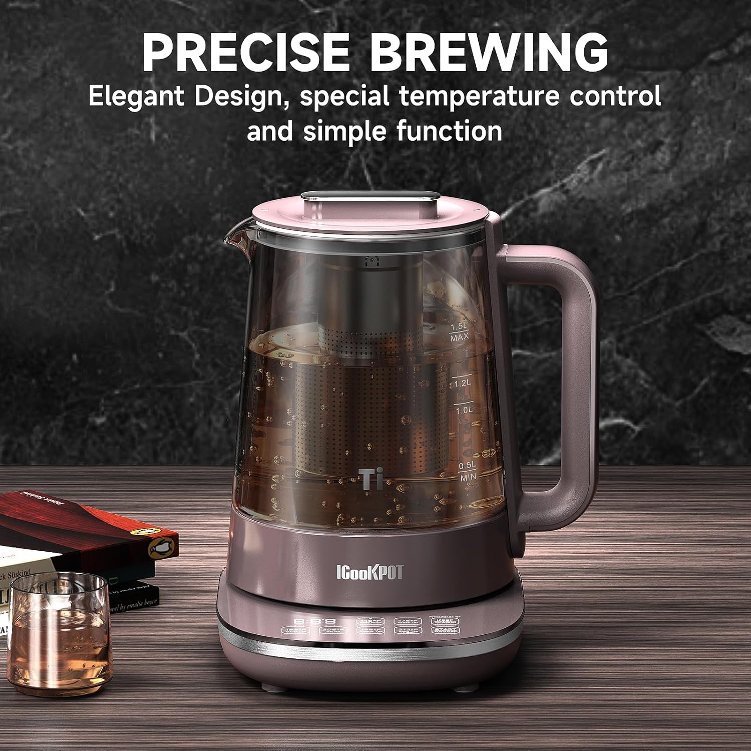 Titanium Hot Tea Maker Glass Electric Kettle with Infuser and Temperature Control,1.5L Tea Maker & 1500W Rapid Boiling,Programmable Control for your Favorite Teas and Coffee-Brown