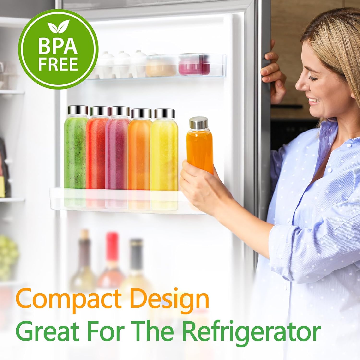 - SLIM DESIGN AND SPACE SAVING: The slim and portable design means you can take your glass juice bottles with cap everywhere, perfectly for garden parties, homemade drinks, weddings, picnics, school, work, gym, fitness, yoga and beach trips. Easily store in the fridge, lunch bag or car cup holder. These Zukro glass water bottles is dishwasher safe, easy to fill and clean