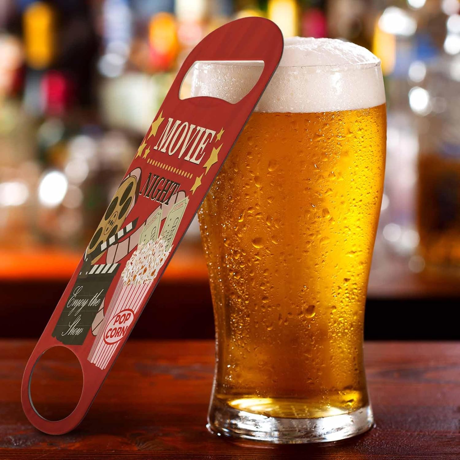 Vintage Cinema Stainless Steel Bottle Opener Movie Night Poster Enjoy The Show and Popcorn Nostalgia Flat Beer Bottle Opener Keychain for Home Kitchen Bar Restaurant Party Birthday Gift