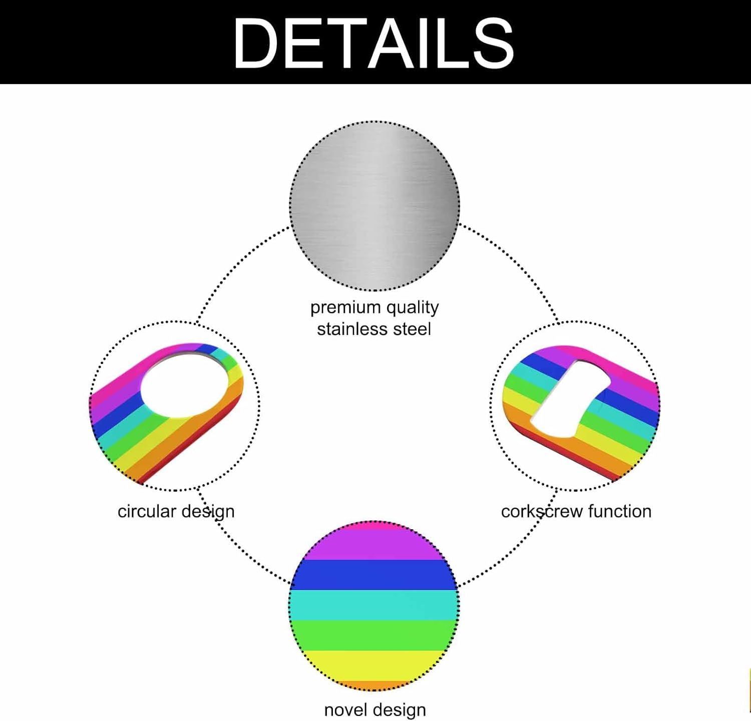 - Premium Material: Our rainbow stripe bottle opener is made of stainless steel, sturdy for long-term use.