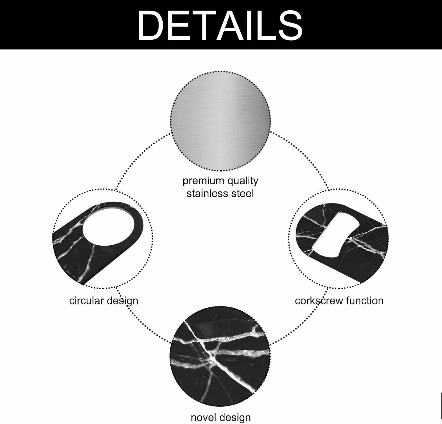 - Premium Material: Our black marble bottle opener is made of stainless steel, sturdy for long-term use.