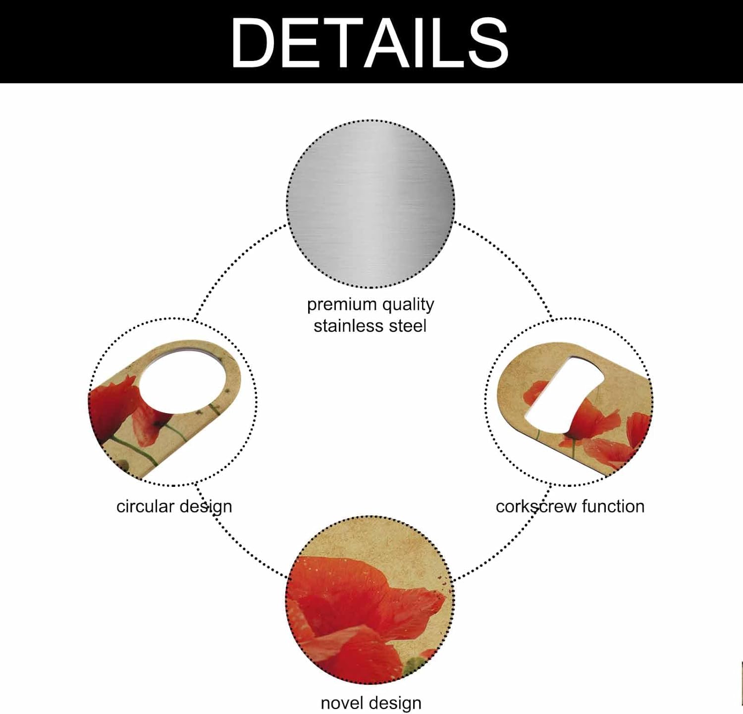 - Premium Material: Our red poppies flower bottle opener is made of stainless steel, sturdy for long-term use.