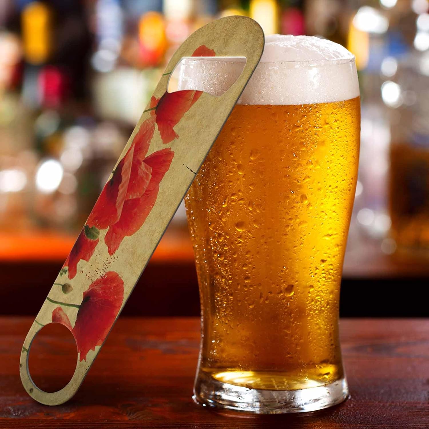 Red Poppies Flower Stainless Steel Bottle Opener Vintage Textures with Field Flower Rose Plant Nature Grass Flat Beer Bottle Opener Keychain for Home Kitchen Bar Restaurant Party Birthday Gift