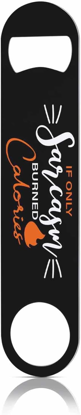Funny Quote Stainless Steel Bottle Opener If Only Sarcasm Burned Calories Flat Beer Bottle Opener Keychain for Home Kitchen Bar Restaurant Party Birthday Gift