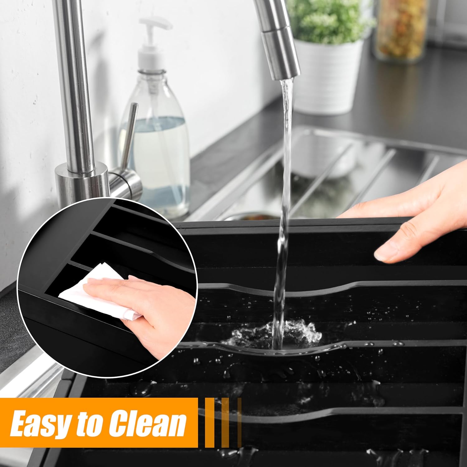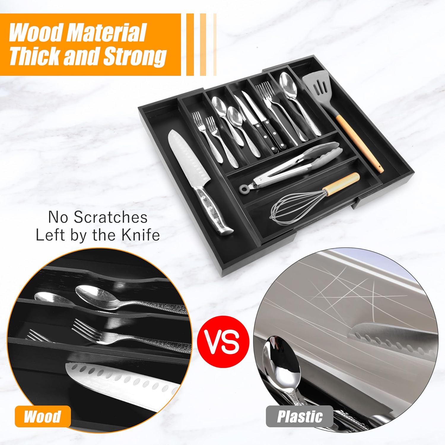 - ✅【Quality - Deep Compartments & Reinforced Base】Our utensil drawer organizer features compartments with a depth of 1.9 inches, helping maximize drawer space and perfect for storing more essential tools and gadgets. The utensil silverware drawer organizer comes with a reinforced base, ensuring durability for long-term use, and is ideal for supporting the weight of heavy-duty utensils and knives. Keep everything you need conveniently at hand while cooking, neatly visible, and easy to grasp when preparing the next meal in the kitchen.