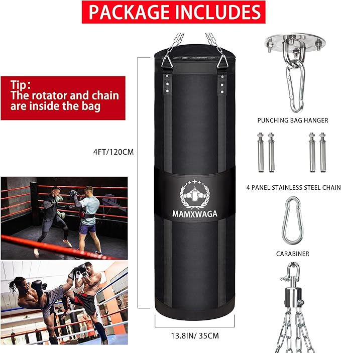- Easy to Fill : Heavy punching bag is EMPTY, easy to carry and storage. You can fill it up with sawdust, old cloth, shredded cotton fabric, sponge and more. But please don’t only install sand, the filling preferably no more than 100 pounds!