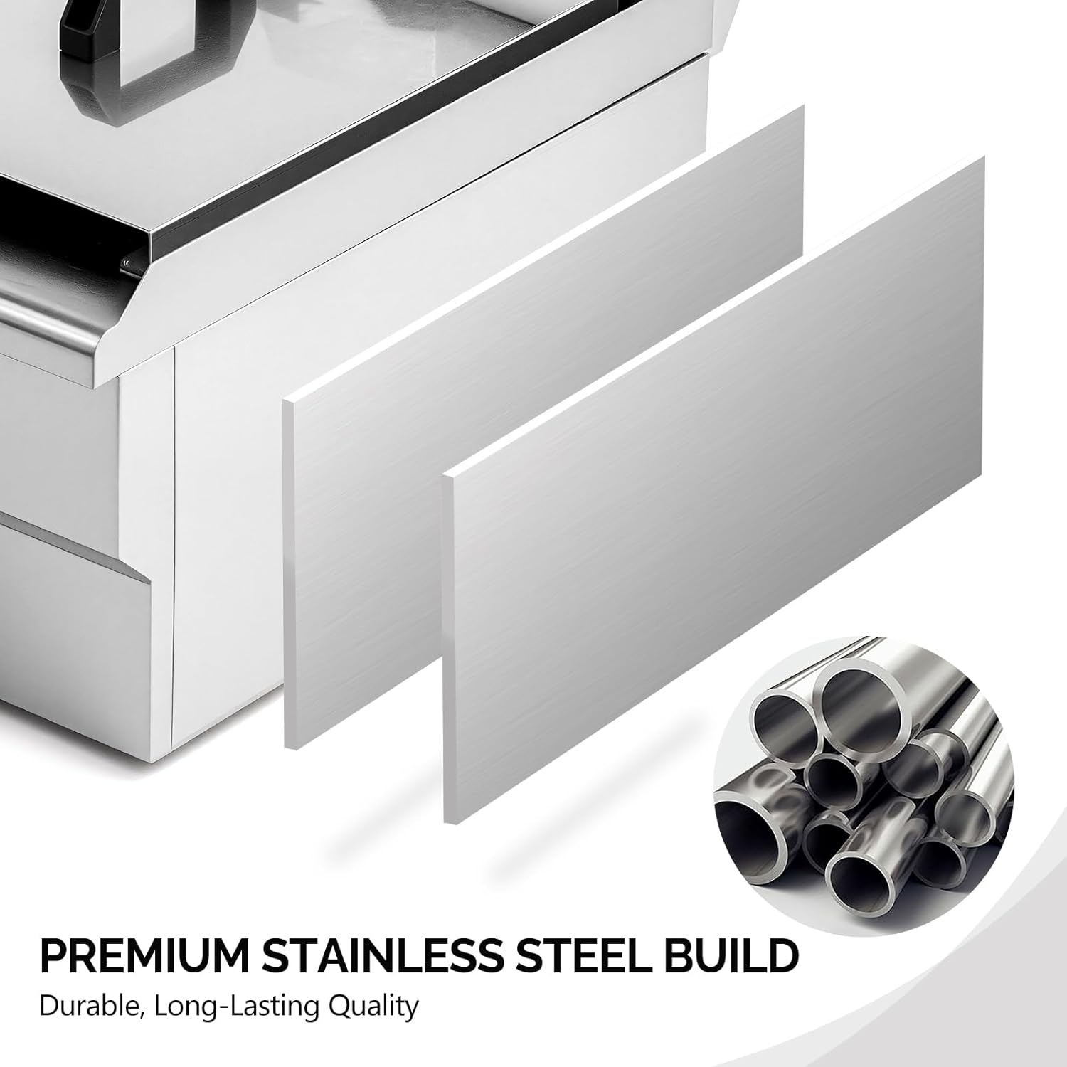 - 【Wide Usage】The dual tank fryer is suitable for commercial use and is applicable on occasions like restaurants, supermarkets, parties, etc. Ideal for making various deep-fried food, such as French fries, onion rings, fried chicken, etc. Overall dimension: (26.4 x 22 x 16.5)" / (58 x 47.5 x 35)cm (L x W x H). (NOTE:It is suggested to use at least 16A outlet.)