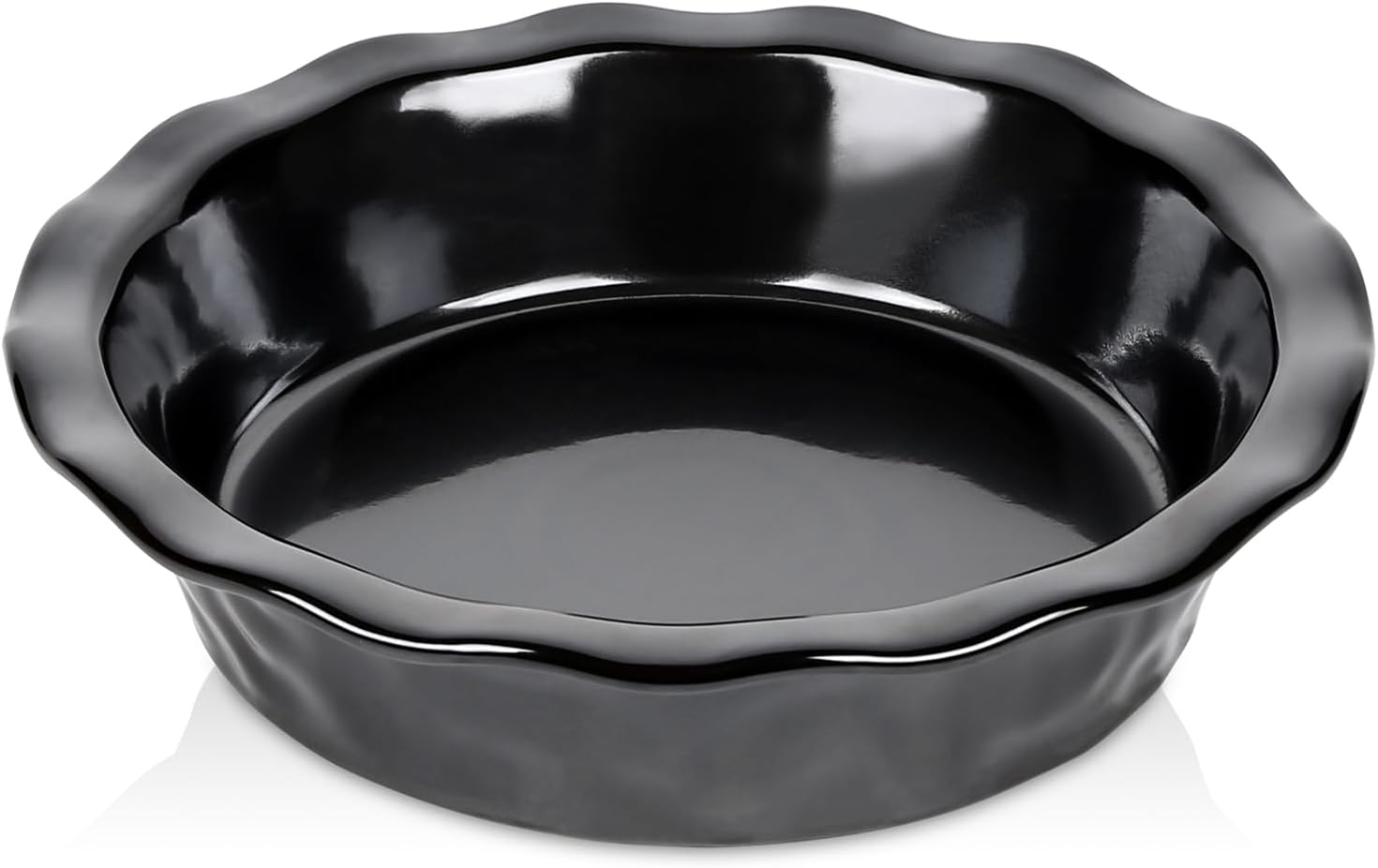 vicrays Ceramic Pie Pan for Baking - 9 inch Pie Plate, Round, Fluted and Deep Pie Dish for Tart, Pizza, Apple Pie, Quiche, Pot Pies, Cake - Reactive Glaze (Black)