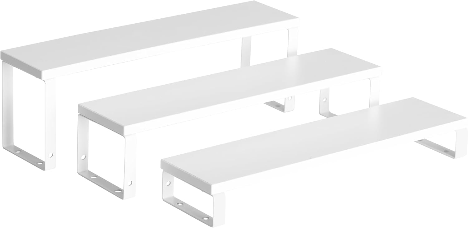 - Convenient Design: The stepped design makes efficient use of your counter space. This wooden display riser is a great idea for displaying toy figurines in cabinets, celebrating party desserts, and cosmetics on the dresser. The raised tiers help to create an eye-catching feature for your items.