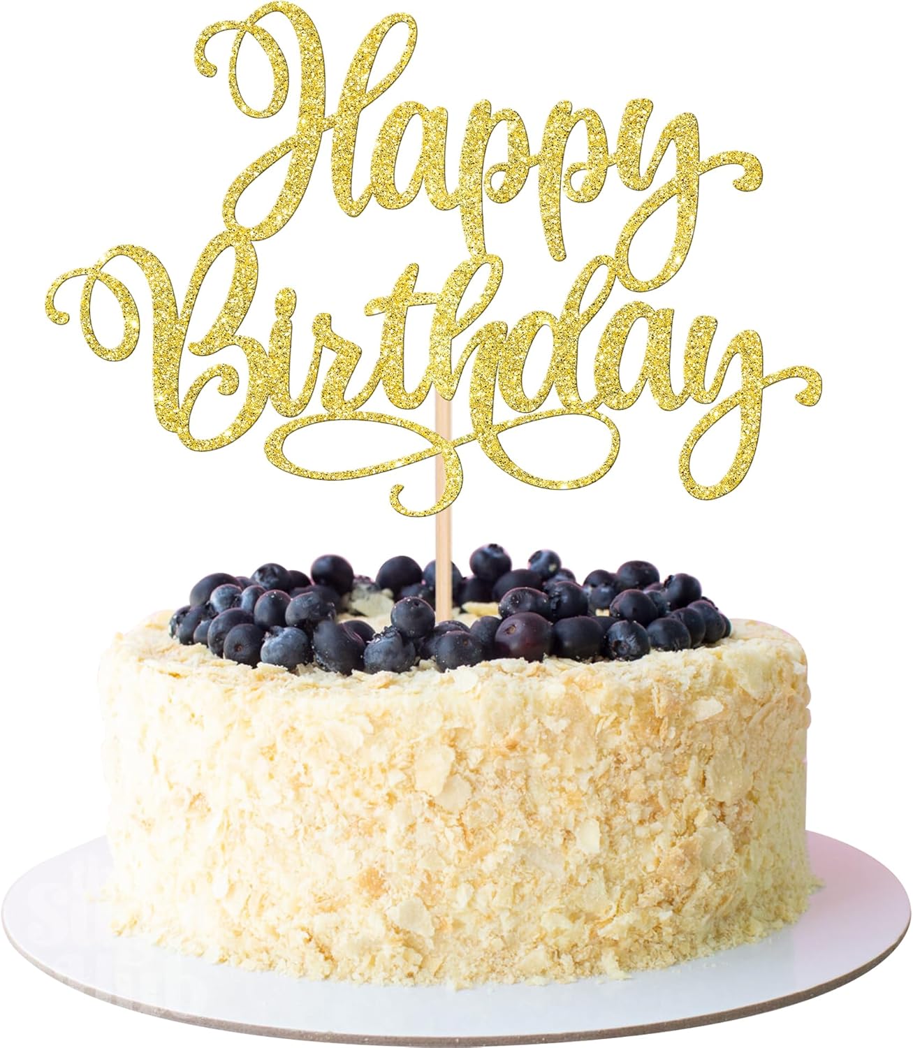 1 PCS Happy Birthday Cake Topper Glitter Happy Birthday Cake Pick Bunting Decor for Anniversary Celebrating Happy Birthday Party Cake Decorations Supplies Gold