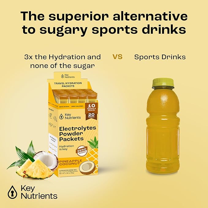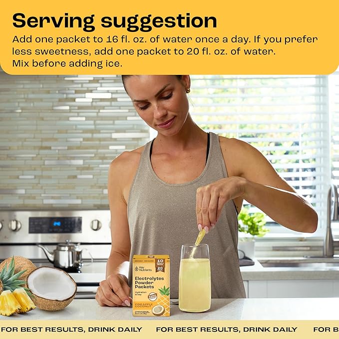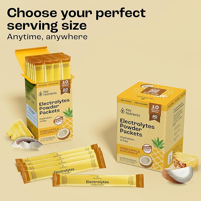 KEY NUTRIENTS Electrolytes Powder Packets - Tropical Pineapple Coconut 20 Pack Hydration Packets - Travel Hydration Powder - No Sugar, No Calories, Gluten Free Keto Electrolytes Powder - Made in USA