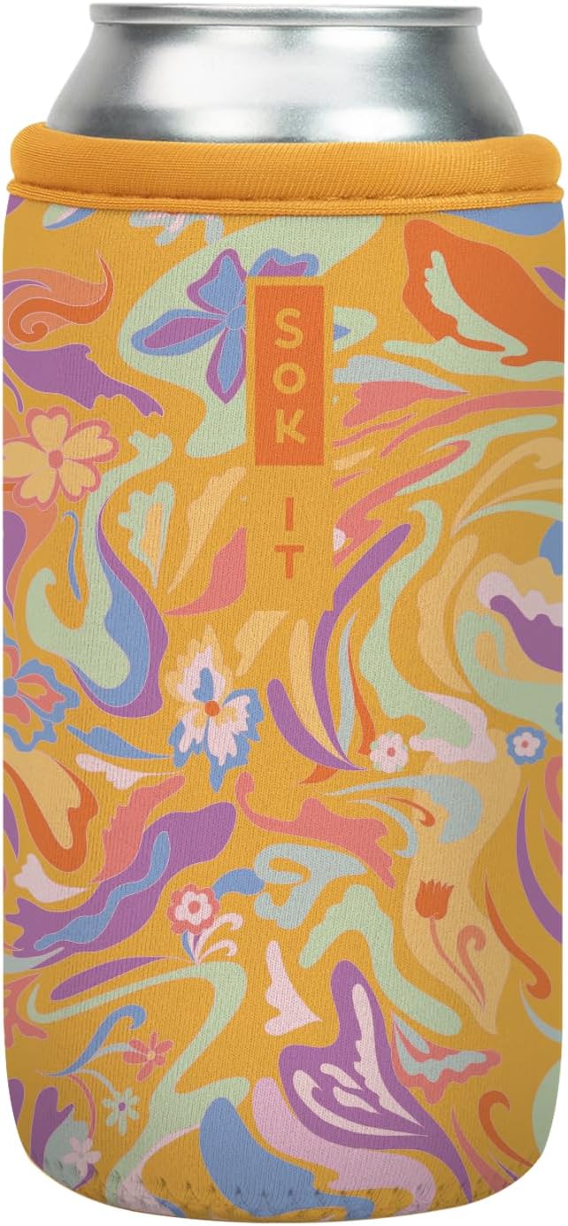 Sok It CanSok Sleeve for Beer & Soda Insulated Neoprene Cover (Groovy Swirls, 16oz Can Sleeve)