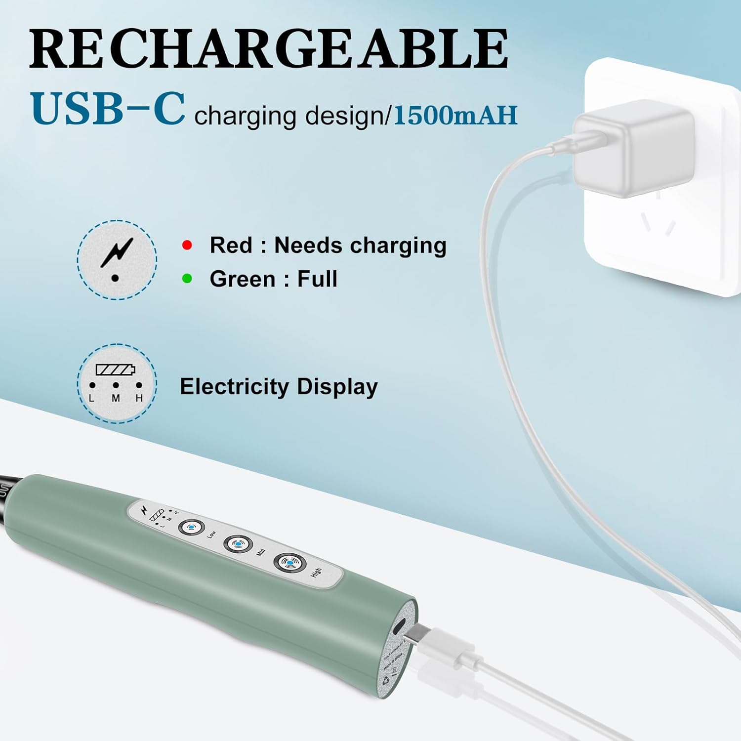 - USB-C Charging Long Battery Life: Our electric frother wand adopts USB charging design, which is more environmentally friendly and lighter than the battery type, allowing you to charge it anytime and anywhere. It can be used at home, in the office, or even taken out for camping. The built-in battery capacity is 1200mAh, which can be used several times a day after being fully charged. This drink mixer handheld also includes a charging indicator light that lights up red when charging and green when fully charged.